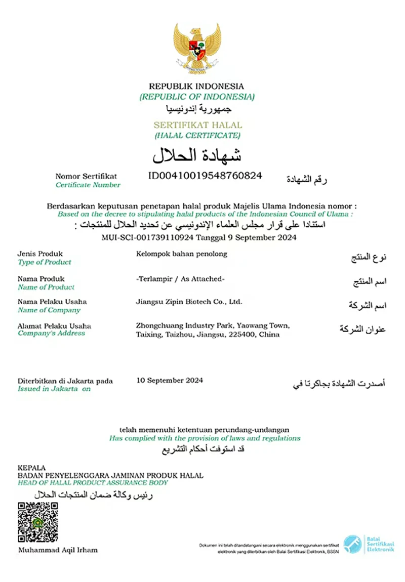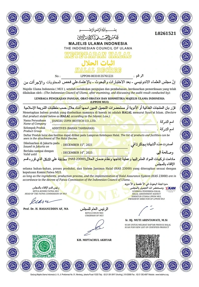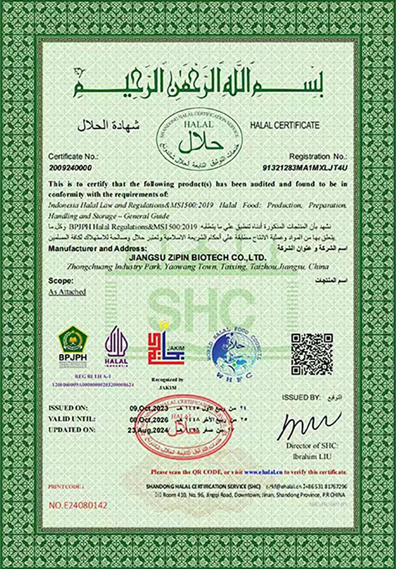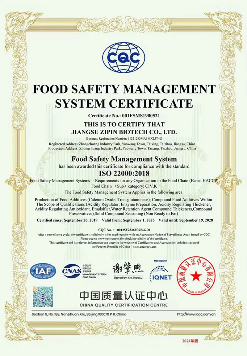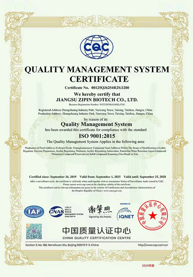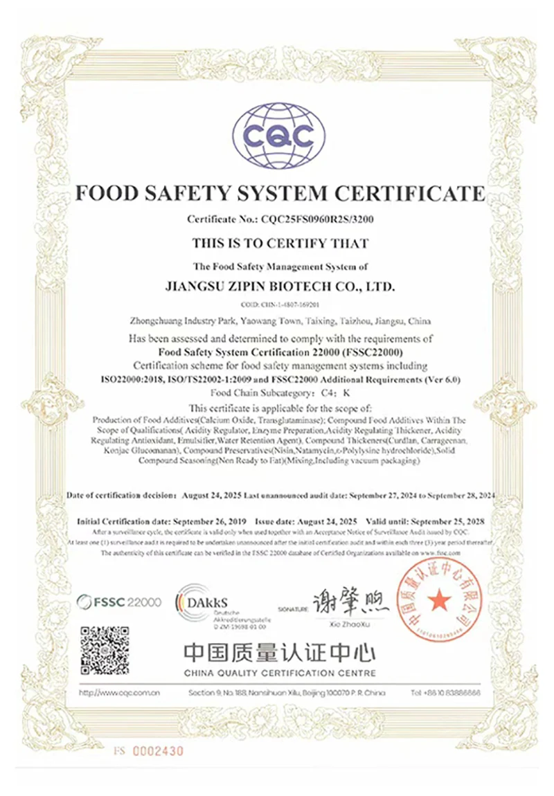 Цзянсу Zipin Biotech Co., Ltd. 2016 жылы құрылды, бұл ауданды 20,000㎡ құрайды. Қазіргі заманғы жеке кәсіпкерлік ретінде біз қазір негізінен ғылыми-зерттеу жұмыстарымен айналысамыз, тамақ өнімдерін өндіру және сатумен айналысамыз. Біздің негізгі өнімдерімізТрансглютаминаза, Курдлан, ε-полилизин, Нисин, Натамицин және басқа да тағам қоспалары.